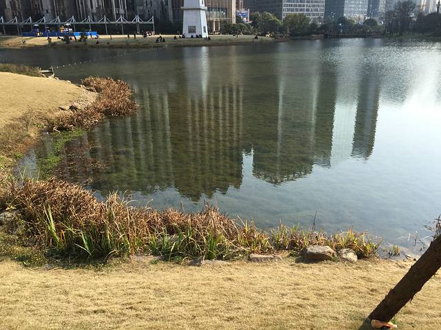 差不多一个小时的车程,来到市区的花果园购物中心,这里有个很漂亮的花果园湿地公园,也就在我们酒店附近。在这里晒太阳,缕缕清风,太舒服了!果真是湿地公园,水草培育得真好看,水很清澈。对面这幢建筑物不知道做什么用的,太赞了!配上一旁的喷泉,景色不输早上的喀斯特公园。如果有时间的话,真的可以在这里坐上一个下午。