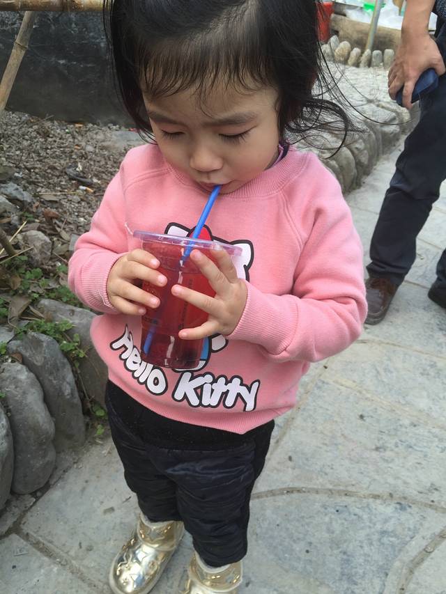 到青岩古镇的时候已经是中午12点多了,走了一会就看到一家小吃店,要了一份猪脚和酸梅汤。猪脚新鲜热辣,嚼起来特香!老公还想点多一份,被我阻止了,因为接下来还有很多小吃,边走边吃。酸梅汤被宝宝抢去喝了,我们只能再买一杯。回想起来旅游的这几天喝了很多杯酸梅汤,酸酸甜甜,生津解渴,确实不错。