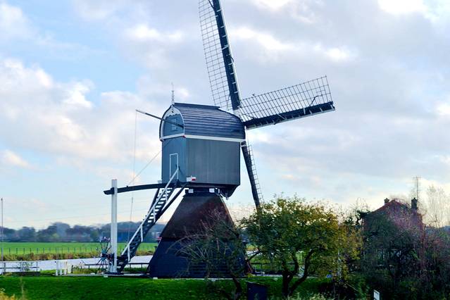 我们跟着旅游团,从比利时乘坐旅游车到达荷兰,一路上农田里的大风车,一般都是用来发电和抽水的 ,大风车可是荷兰的标记。