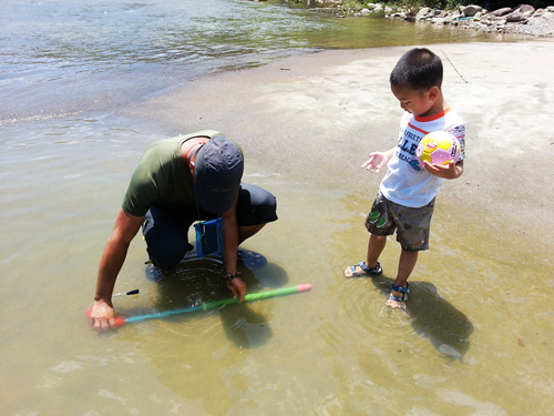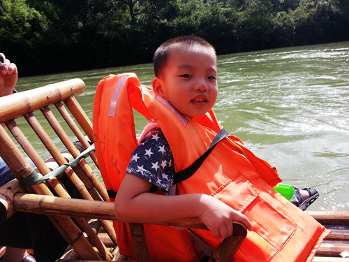 对于我们这对第一次参加飘流的母子俩来说,每次的变化都充满了惊奇,特别是水流湍急的浅滩路段,博是又害怕又兴奋。