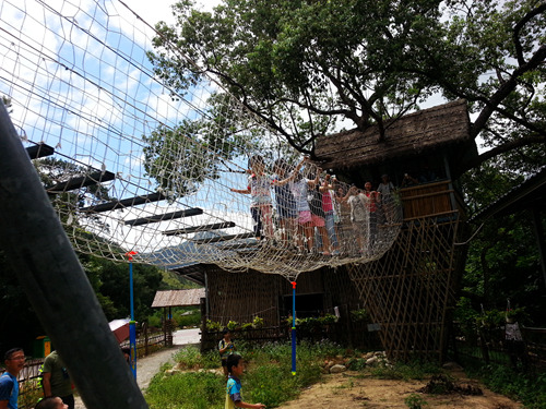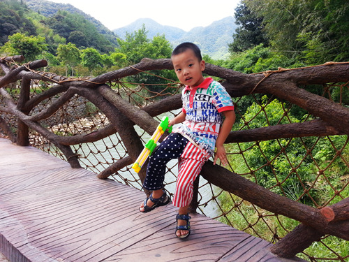 像这网状的吊桥,像我这样的恐高症人群还是不上为妙,宝贝们却欢喜的很,特别是博,准备出园的时候拉着我又走了一遍,还直嚷嚷必须再走三次!
