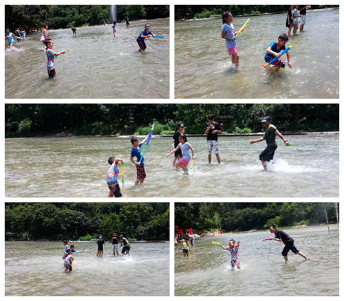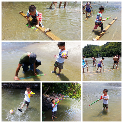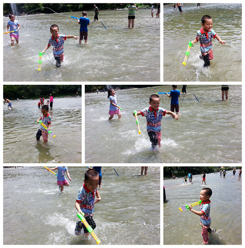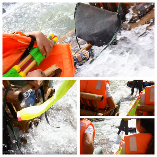 2、既然是玩水,那么你的背包里少不得一些必须的装备,比如水枪、手机防水袋(PS:景区那买水枪10元起,防水袋看依姆心情,5元起);比如浴巾、干净的衣服(PS:孩子至少带三套,水上广场打水战湿身是必然的,竹排漂流也是得湿身的;)