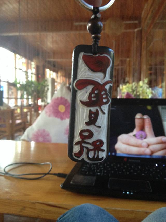炒完菜 吃完饭快两点了 小休息了下 3点多 去了古镇买点小礼品 秏牛骨刻字