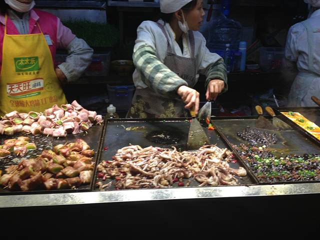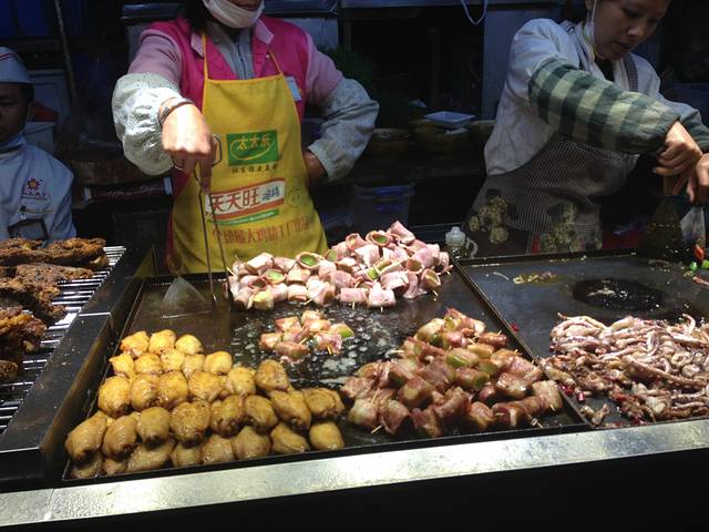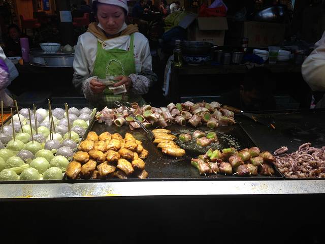 逛了到晚上10点钟 挺累的 该回去休息了 买了一份小吃 15元 贼好吃