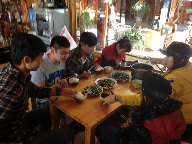 客栈人员 田阳 高林 小苏 人称 苏妞 还有林姐 每个人都很好相处 突然离开 还真舍不得 抄了三个菜真心觉得不够7个人吃的,不一会一扫而空.
