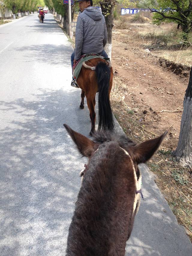 开开心心的吃完烤鱼上了岸,坐着面的去骑马场了 开始第二站 茶马古道喽
