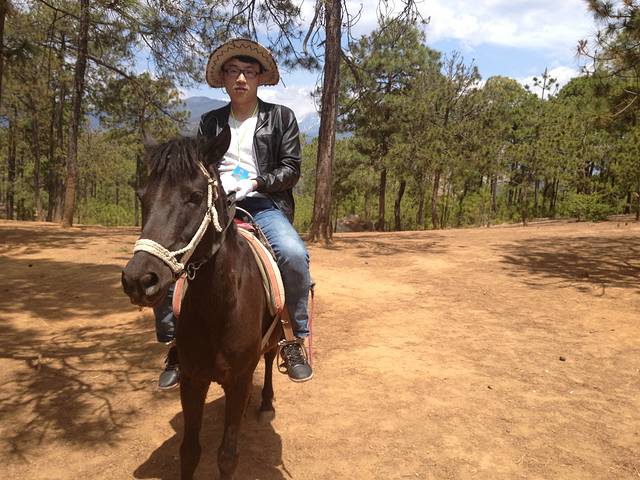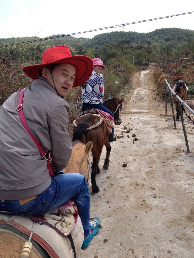 纳西族的"胖金哥" 骑马带队