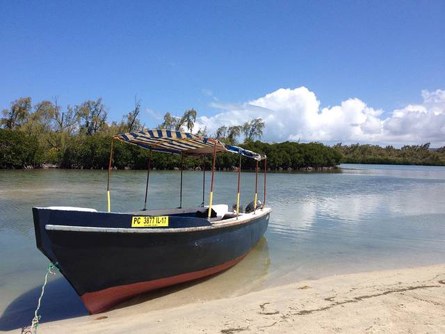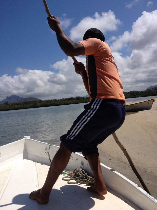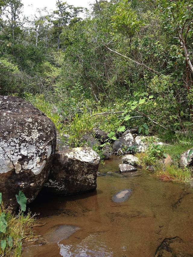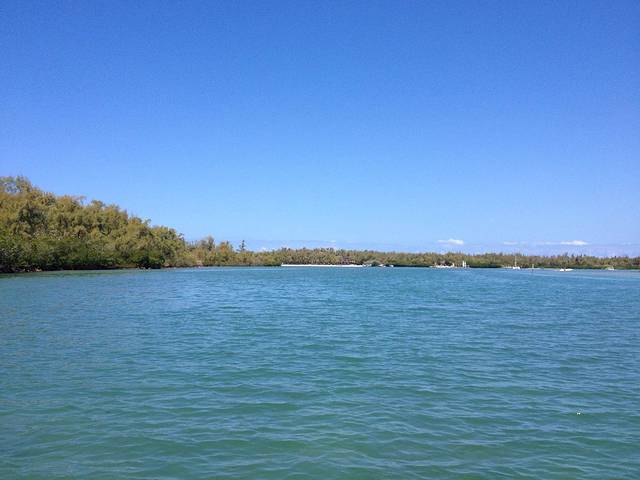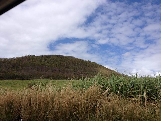 今天原计划行程鹿岛 由于种种原因没有提前预定 就走着看了 出门一磨蹭都9:30啦 岛的东线和西线风景大不同 少有大片甘蔗地和突兀的山峰 多了森林和火山堆 去鹿岛从北边开过去真不近 而且一路弯弯曲曲 路标不清 花了快2小时才找到路 没走旅行团出发的大港口 从一家靠近河的入海口的私人码头出发了 包船和午餐才合人民币200一人 比走旅行团要便宜一半 虽然不是双体船 但可以更加灵活的穿梭于礁石间 先就近去了瀑布 虽然瀑布不大 但是河岸的风景很美