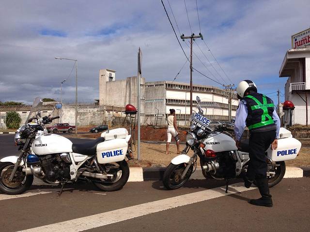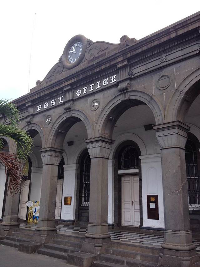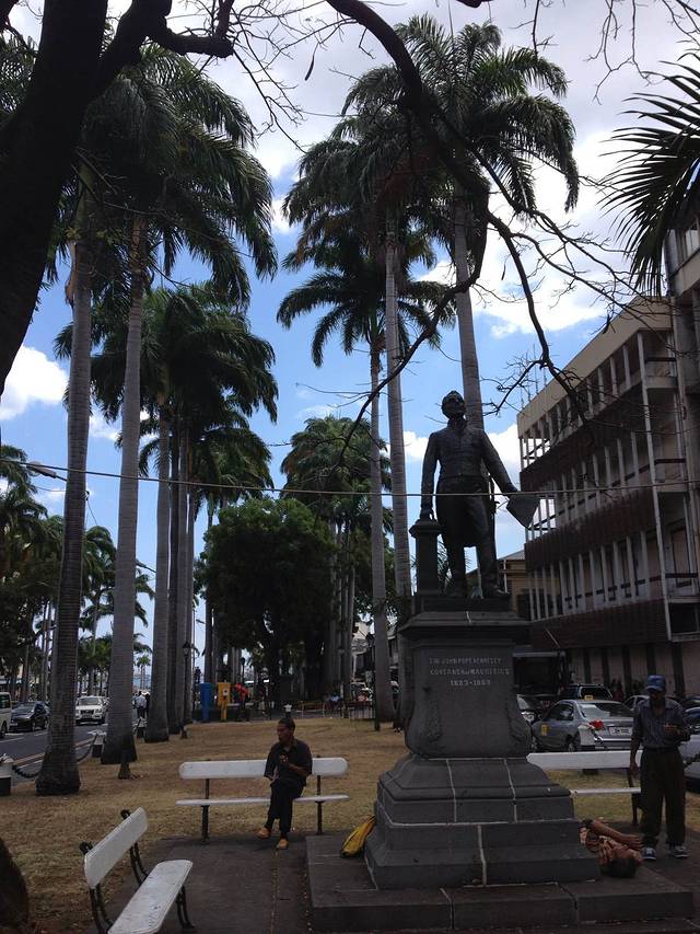 上午原计划是去大湾坐潜水艇下到深海的 没有提前预定的结果就是扑了个空 当天没有 下次要等到周六 我们都要离开了 每个旅程都要留点遗憾才有念头是不 在大湾还有段小插曲 被三位帅帅的警察哥哥拦下查车 查驾照 看是否系安全带 车上是否有灭火器 国内驾照加护照就可以 无需英文公证件 机场租车的时候也没看 三样都没查出问题就把我们放行啦 坐潜水艇未果就按下一项日程去毛球首都路易港啦 把车停到邮局后的一片购物餐饮区的停车场 下车在港口 老邮局逛了逛