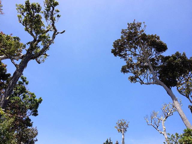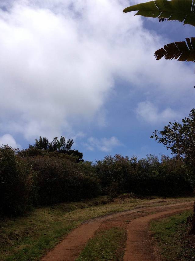 小伙伴们有外围大路不走 选择了进山 山虽不高 上上下下的坡还挺陡的 还好有盘根错节的树根和光滑的树干 不打滑还能撑上劲 唯一遇到的困难就是过一块沼泽地 虽说用登山杖测试过了 第一个过的小伙伴还是不小心失足了 弄得脚上身上都是泥 让我也很谨慎 想了N种方案 墨迹了半天 在小伙伴们的帮助下 总算顺利通过了 爬坡累的时候小伙伴们的几句俏皮话又让体力满格了 甚至有时候会乐得直不起腰 不得不停下 和一群有爱的小伙伴们在一起就是欢乐多 到达目的地是个viewpoint 视野很开阔 小伙伴们面对大山一字坐开 拿出背的干粮水果 吃起来格外香 面对着美景品着美味 眼看着从对面山里吹过来的雾气带来了一阵不小的雨 还是不愿意挪窝 唯一在大路上遇到的一群外国mm们好心的给我们指避雨的地儿 小伙伴们看看时间不早了 才不舍得走上返程路 回去走的大路 一路走着很轻松 看着渐开的蓝天白云 那叫一个赏心悦目啊