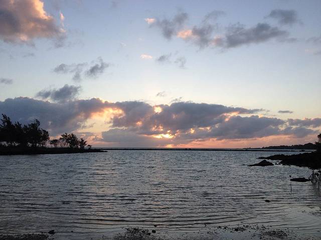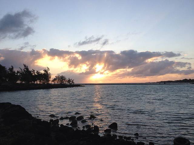 从七色土一路沿着海岸线往南 就到了毛球的最南端 Le Morne 正好赶上日落 在海边静静的欣赏完日落 小伙伴们在沙滩上的儿童游乐场 又是翘翘板 又是荡秋千 玩的不亦乐乎 离开的时候才发现再往前开不久的一个弯道就是天涯海角的观景台 看日落的角度可能更好