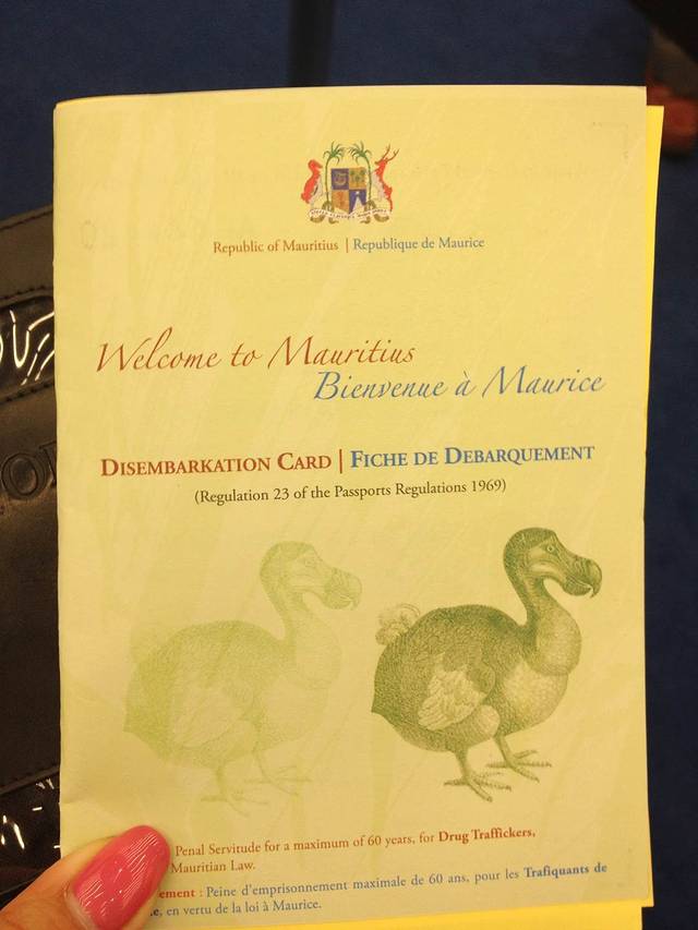 终于到达毛球了 第三次走进非洲旅行 继南非北非之后 来到了东非岛国 毛航服务和餐食都还不错 内部风格也很小清新 让人走进机舱就眼前一绿 立刻放松下来 毛球的机场也比我想象中的现代 有田园派的爬墙虎 也有现代派的免税店 入境卡和入境章也少不了国鸟渡渡鸟 这里可是真正的对中国护照免签哦 不是落地签 盖个戳就进来啦