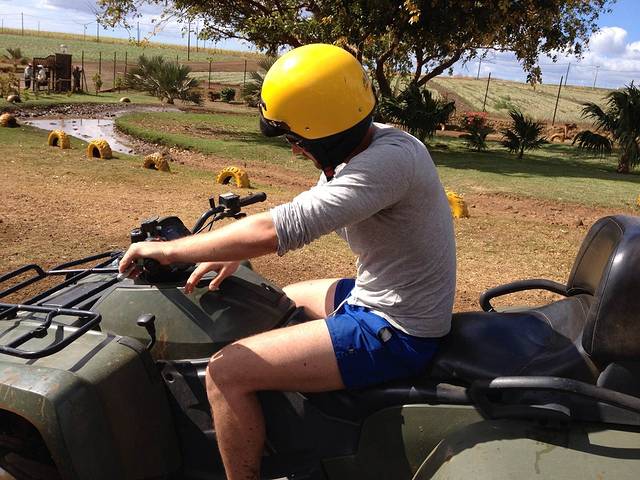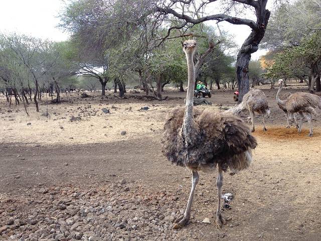 下午2:30到达鸟公园 提前电话没预定成 只有法语木有英语 头一天专门跑过来一趟才预定上的 这里是在毛球我们跑到的最有人气的景点了 中国人尤其的多 可是这里的门票格外的贵 收费项目也多 真是符合中国人扎堆送钱的心理啊 比起上午不收门票在山里也见不到人的国家公园 真是鲜明的对比啊 订了2小时的四驱越野摩托 我们这个小分队6辆车都是中国人 老黑领队都会用简单的中文交代摩托按钮啦 经过2小圈test run就出发啦 其实路线是在公园外 但是还必须买公园门票进去开骑 也是够黑嗒 这些动物们其实是被圈养到了更大的场地而已 有门有围栏有饲料 感觉是我们去打扰他们 被他们围观了