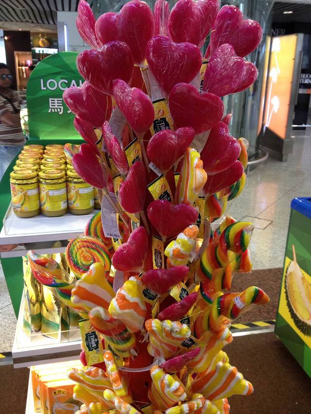 在吉隆坡机场转机 有免费wifi好好 走到转机柜台 毛航已经把登机牌打好 等着手动关联一下行李牌就能取了 这里的店面还挺多的 就是价格不便宜 尤其当地货币乘2看着就没那么爽啦 第一次看到LP的店 榴莲是马来的王牌水果 各种制品 走哪拜哪 不放过任何一次机会 看到安娜苏的小瓶香水 被精致的小瓶瓶迷惑了 理智的告诉自己没带香水 就果断出手啦