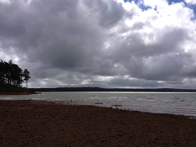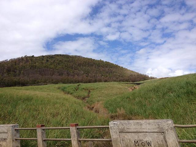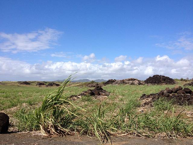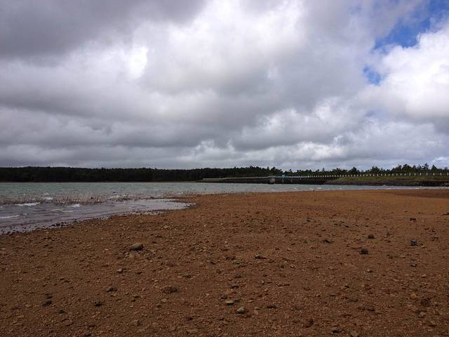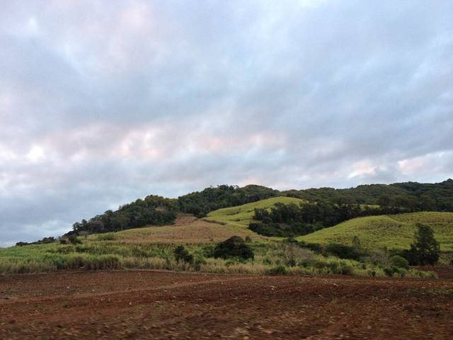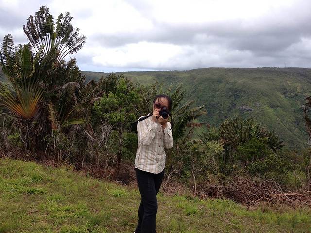 在毛球就剩下最后一天活动了 把最重的行程压在了这天 半天山间徒步+2小时四驱越野摩托 为了能够玩的尽兴 小伙伴们不惜牺牲睡懒觉的时间 早上七点就出发了 出门早了点果然就没那么堵了 不过每个转盘还是都有警察指挥交通 逐一方向放行 话说毛球的交通设计还真是处于初级阶段 没有立体交通 高速上靠转盘入口出口 几个方向的车都得让转盘内的车 高速经过市区还有红绿灯 不过据说这种状况很快就要缓解了 沿西边海岸线纵贯南北的另一条高速今年年底就要通车了 总觉得在毛球这种慢生活的地方大堵车很不搭调 有损生活质量 还有就是烧甘蔗地 浓浓的黑烟也有损PM2.5为0的形象吧 途中路过在毛球见过的最大的一个湖区 下车沿湖走走 呼吸新鲜空气 看到不少用细甘蔗做的鱼竿 就地取材啊