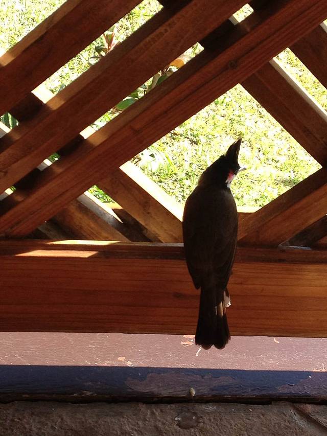 昨晚这群小伙伴们在自家阳台和草坪上晚餐 喝了一瓶法国红酒 半瓶朗姆 用煮花生做下酒菜 吃了一只烤鸡 一堆蔬菜沙拉 还有红提 牛油果 青木瓜等水果 引来两只小猫求分享 把她们也给喂饱饱啦 今天早餐在阳台上又继续用面包喂各种小鸟 还是个儿小的反应机敏