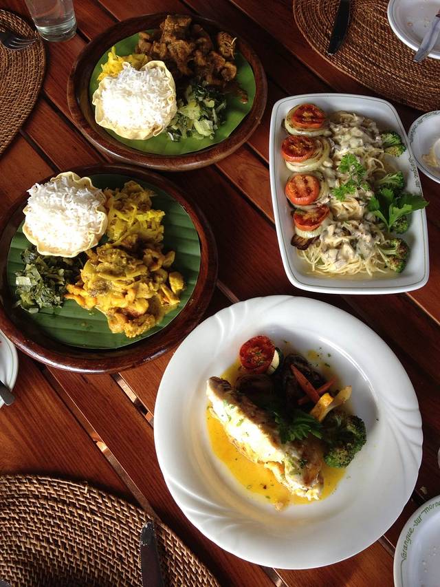 从鸟公园出来直奔西边的Flic en Flac小镇 赶上了在海边看日落 想到是此行在毛球看得最后一次日落 用相机狂拍了个够 然后找地儿吃饭 在一片餐饮购物区误打误撞进了家中餐馆 去得时间早还没上客 老板只会说粤语 和广东女大厨直接用中文沟通点了菜 看价格比前面任何一顿正餐都便宜 就一通狂点 菜全做好了才一起上的 除了红烧鱼被炸过了外 其他菜味道都不错 就是热水变茶 酸辣汤变海鲜汤 可能沟通有点问题 话说毛球的米饭真贵 一小碗合人民币都要5到8元 这家在大湾还有分店 来了这个小镇 小伙伴们一致的感觉是要是能住这就好了 不仅交通便利 位置居中 离大多数景点都近 不用每天从北往南穿岛堵车 而且购物餐饮便利 小镇比较发达 看着条件不错 也临海 可以推荐给要去的童鞋哦