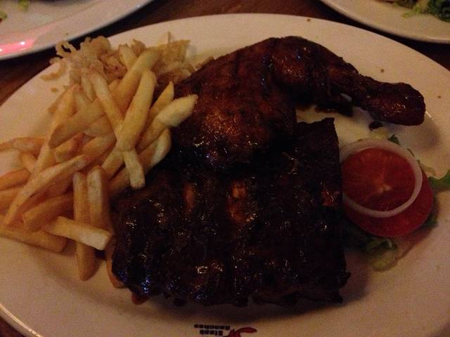 在mall of mauritius办了手机卡 超市采购了食物后 去了家连锁的印第安餐厅吃烧烤 全是硬菜 够实在 还有的打包 性价比不错