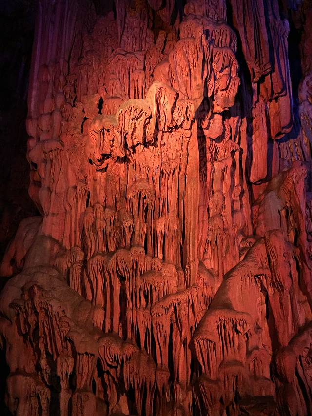 需要登一小会儿山才能到达洞口,景点按顺序把游人分成小团体由一个导游引领并讲解,从进洞直到出来。导游手里有灯光遥控器,每到一处都会停下来讲解一番并留下拍照的时间。走走停停,节奏掌控的刚刚好。