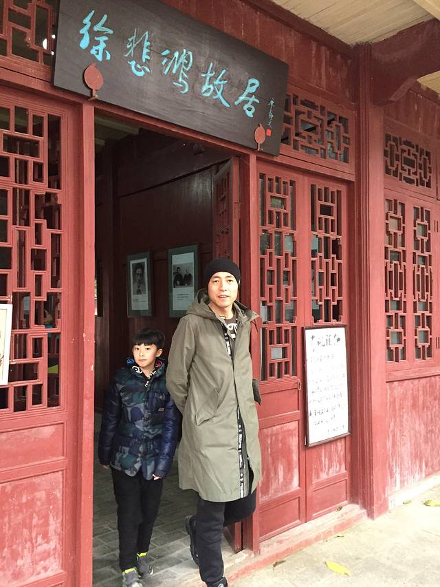 徐悲鸿故居,这里是一座三开间的砖木结构平房。故居内有徐悲鸿先生的塑像,还有一棵据说70年树龄的玉兰树。