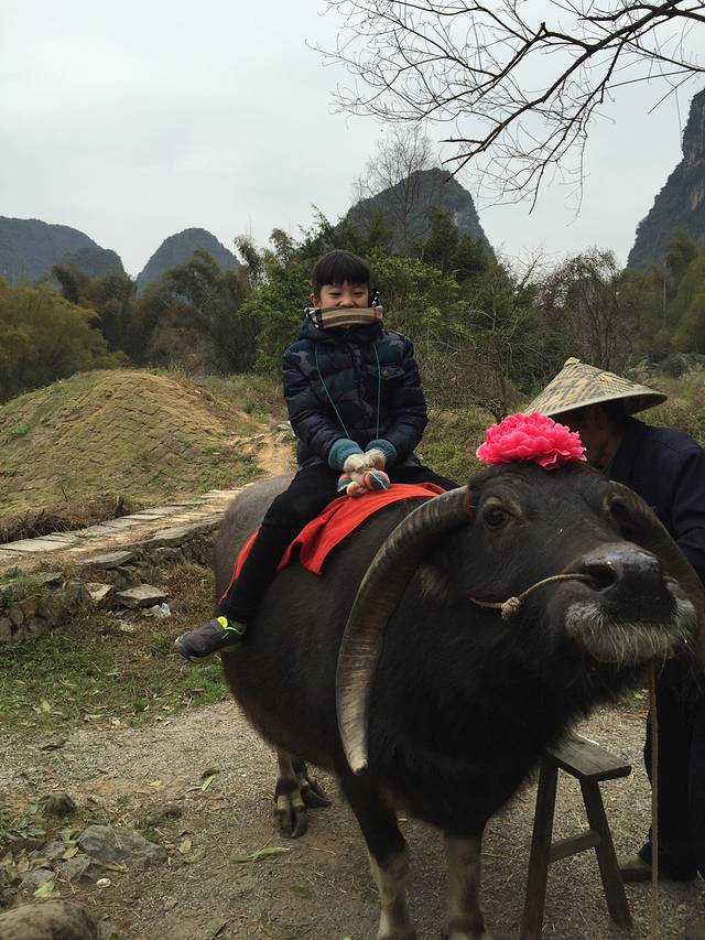 去之前期望值最高的景点之一。但和我的想象相差甚远,这里不防吐槽一下。十里画廊骑行直接让我联想到的是那年在杭州西湖的骑行记忆,租2量自行车绕西湖-白堤-苏堤春晓的经历记忆犹新,每每总还会念叨着什么时间再去一趟。同样是诗情画意的名字,等我们到了景区大门口时就已经没了进去的冲动了!所谓十里画廊并不是行走在一条风景秀丽的路上观两侧的景色,而是一条公路,分别在路的两侧围圈了的一个又一个相邻不远的人造公园。公园内不妨有一个主要山或水(天然的),加以人工雕琢改良后依靠阳朔的名气招揽生意,且百试不爽。