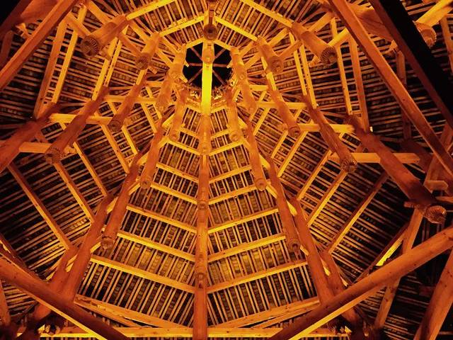廊桥最中间一座屋梁,层层上去像叠塔一般,纯木制,无钉,百度了没查出这些建筑该叫什么,下次有机会问当地人吧。