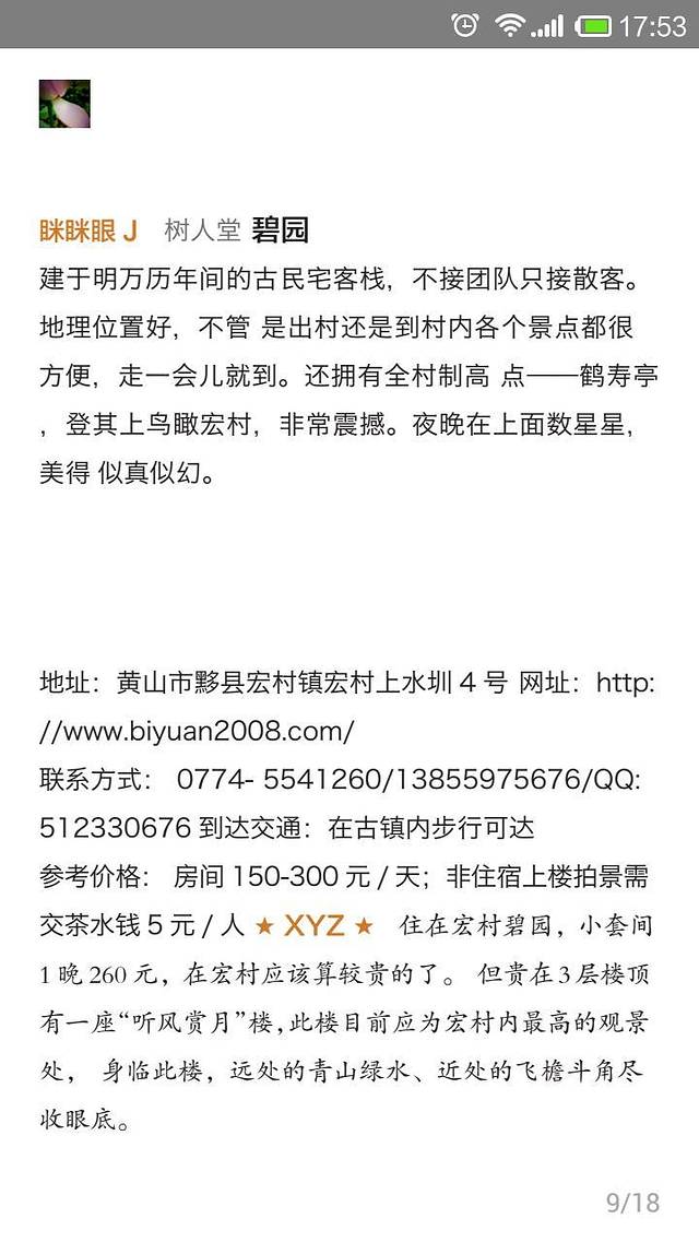 自驾:从黄山风景区南大门出发,沿S103,一直向黄山市方向开,约15分钟左右到达一个中国石化加油站,这时会看到一个路标到宏村向右转,进入宏儒公路,20分钟后到达宏村景区停车站