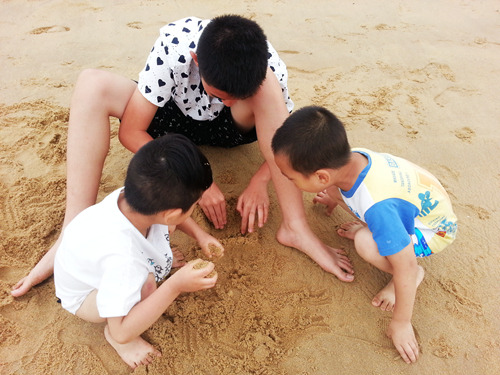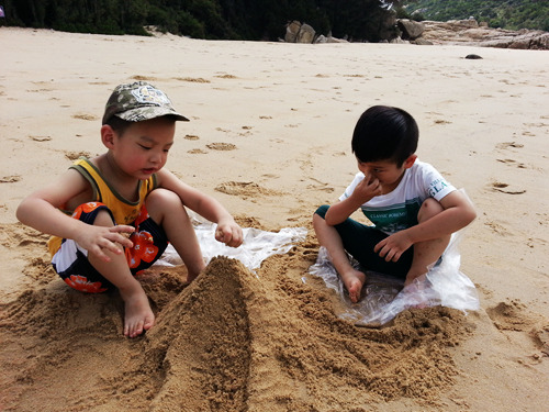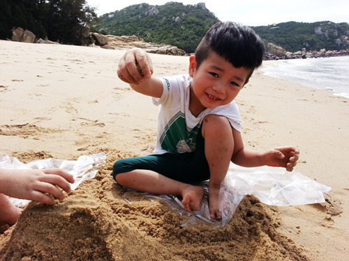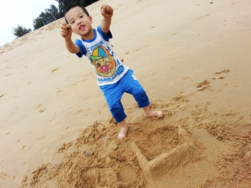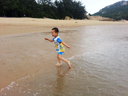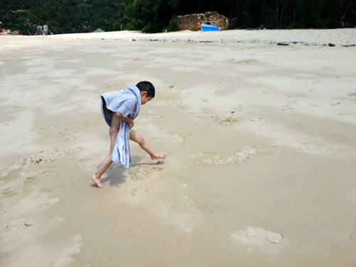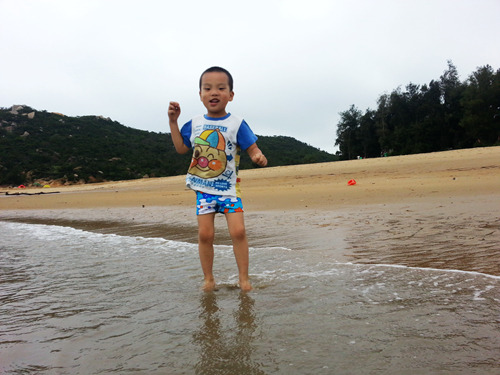 第二日的上午,潮水上涨,可以下海玩耍啦~小屁孩光着屁股到处跑,博在海里玩的不肯上岸···