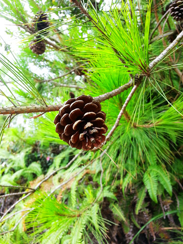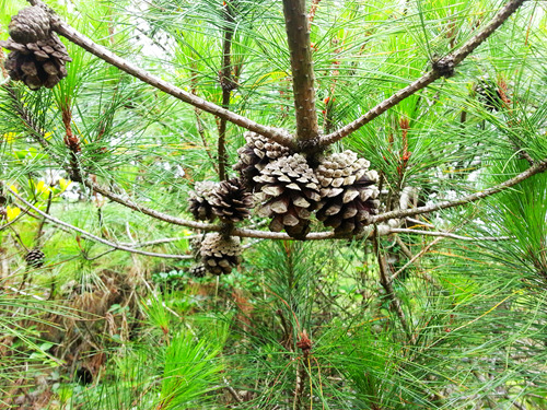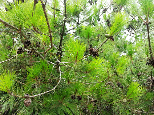 松树都只有一人高,博可以很轻松的自己采摘松果。