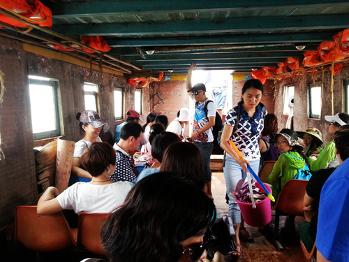 很简陋的轮渡,我们人多分两批上岛。上下船都好惊险,特别是小宝们,得靠大人们凌空飞度。