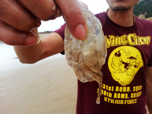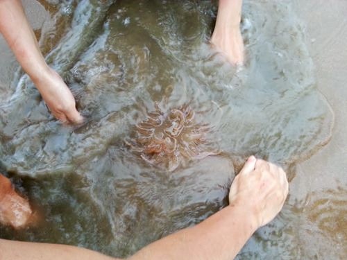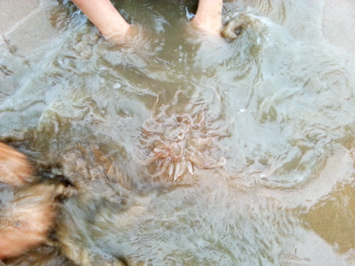海葵~捕捉时要小心翼翼的把它四周的沙子都挖开,挖深,然后速度的两手叉入沙底将其撬出;