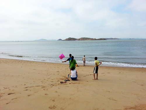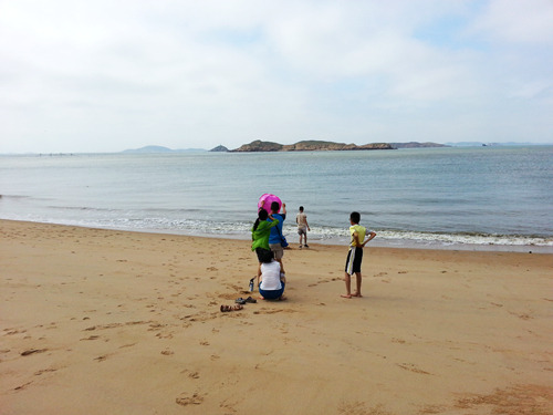 阴凉的天气清爽怡人,没有阳光的暴晒,孩子们不用躲在防风林里就能直接上海滩玩耍。