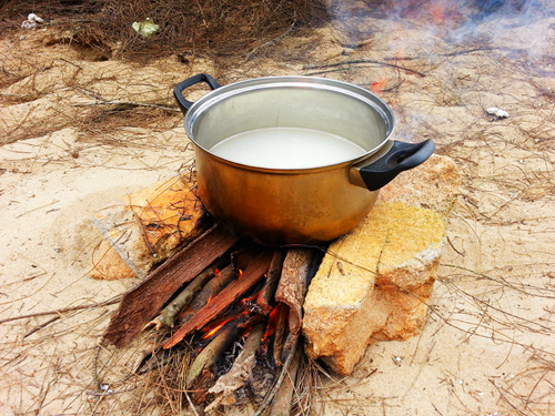 PS:如果带上蒸熟的饭团来煮咸粥,速度更快哦~