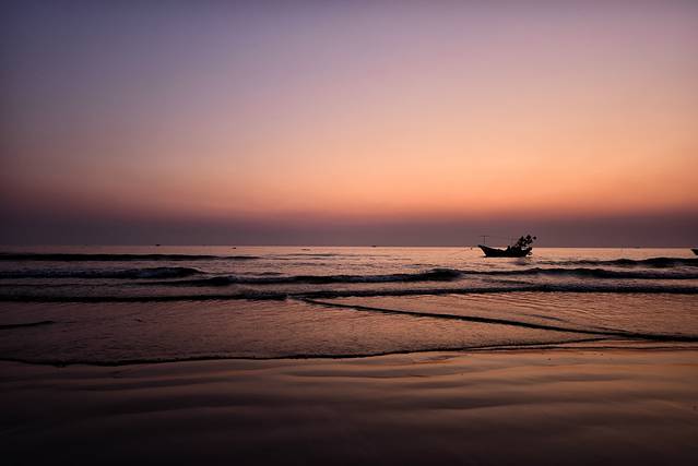 滴水丹屏海滩上孤独漂泊的船只。