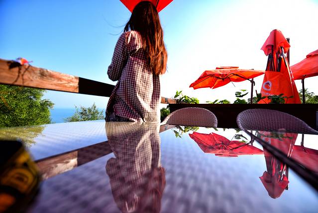 往前走可以看见咖啡厅,果断去阳台拍照啊。