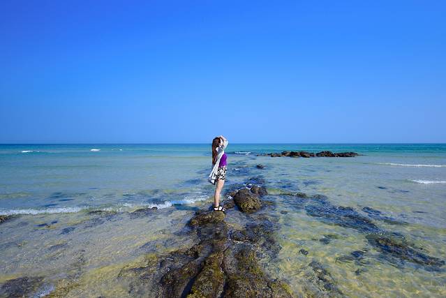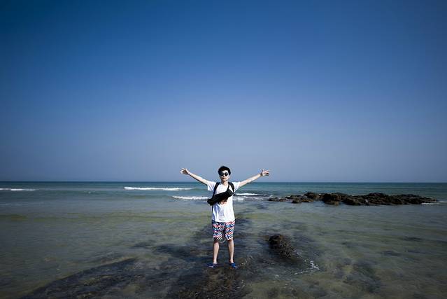 看见这种礁石很有上站上去拍照片的冲动,欧巴老担心我摔倒海里面去,我一直在强调我会小心的,万一掉下去也会游泳没事。
