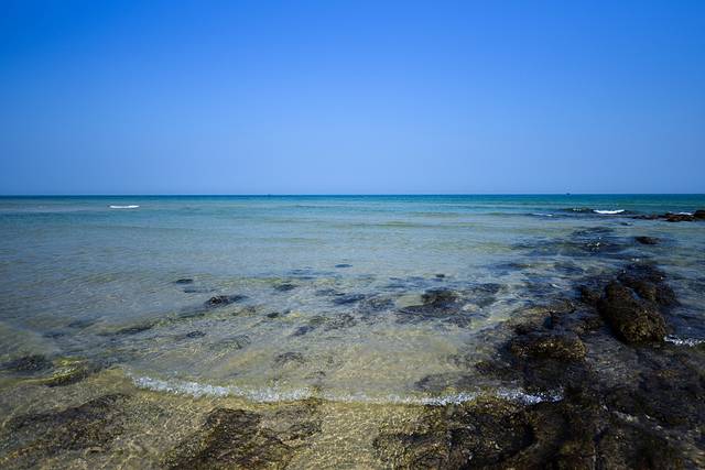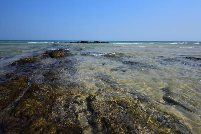 透过水面可以很清晰的看见水底的礁石。这边有潜水区,不过海水温度比较低,现在潜水的人还是很少。