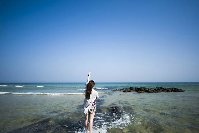 沿着滴水丹屏的海滩面对海洋一直往左走就可以走到鳄鱼山公园,如果没买岛上的门票还可以逃票进公园。可是忽略了白天是涨潮的时候,前路是一片大海根本过不去!!!!只有倒回去,走回鳄鱼山公园停车场。不过还是十分赞同大家走这条小道的,要选下午5点-6点左右的时间,因为这条道真的是我在涠洲岛走过最漂亮的道。