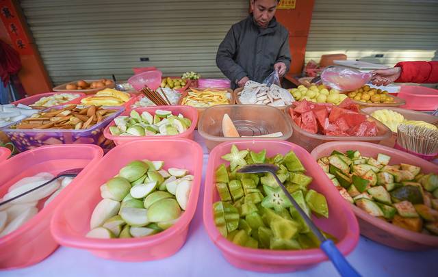 第一站就是我最喜欢最爱吃的的酸也了,这种吃法我只在两广地区见过。估计很难想象,水果撒上盐,辣椒的情景吧。不过味道很赞,没吃一到广西广东必吃的小吃之一。