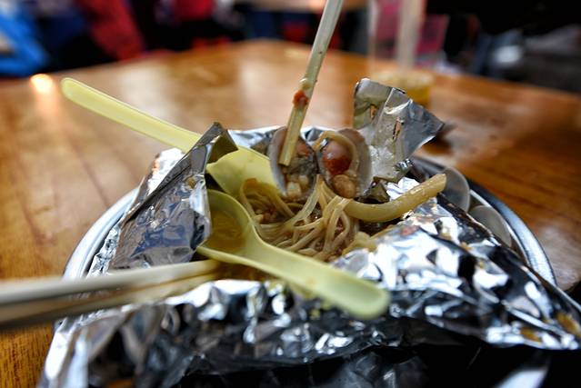 花甲粉,20元一份,不推荐在门口的那家吃,花甲太少了,全是金针菇,虽然味道不错。
