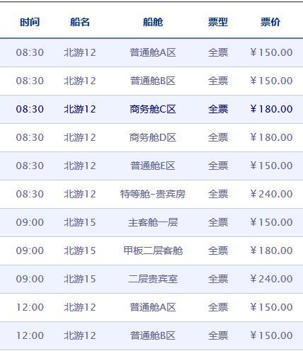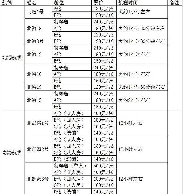 时间列表为旺季时刻,淡季具体得到官网上查看。