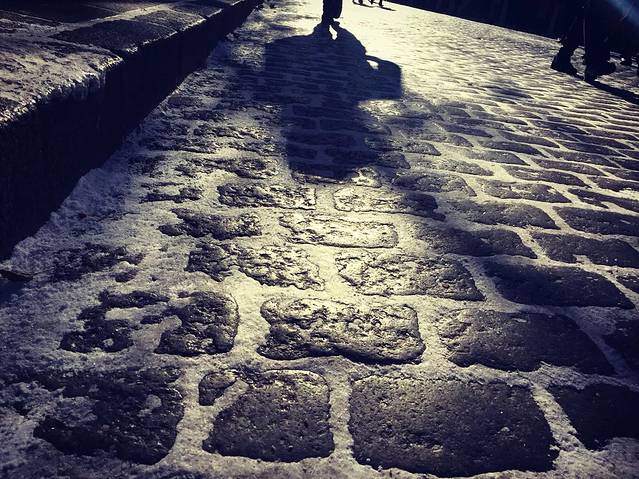 刚好前几天下了雪,教堂旁的广场堆的大雪人,比我还高!