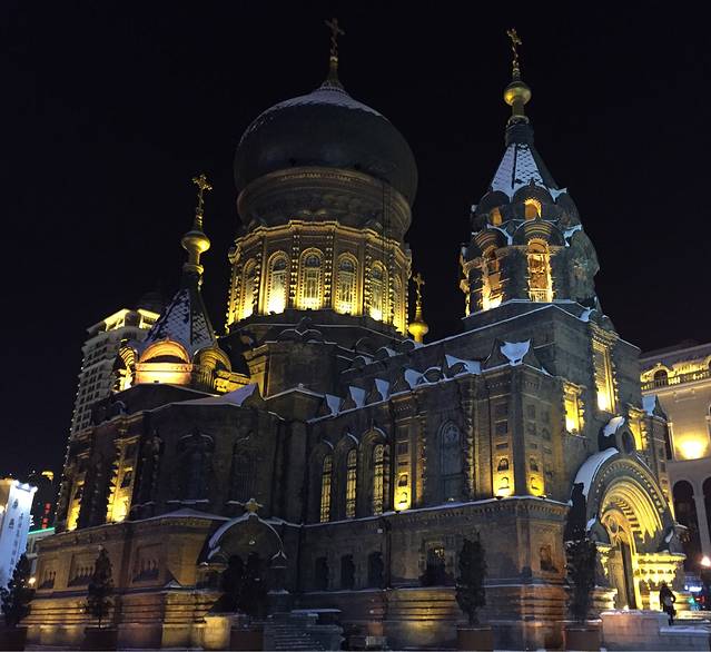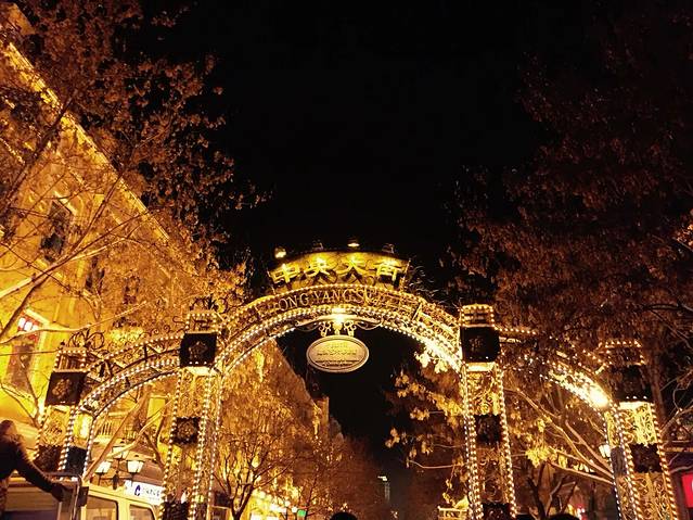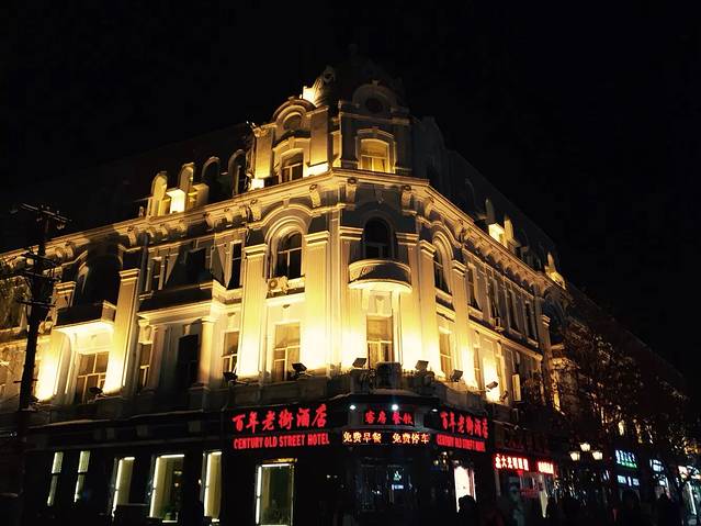晚上到的哈尔滨,坐机场大巴到市区。定的酒店就在中央大街附近,所以去酒店前逛了一圈。中央大街夜景很美啊!