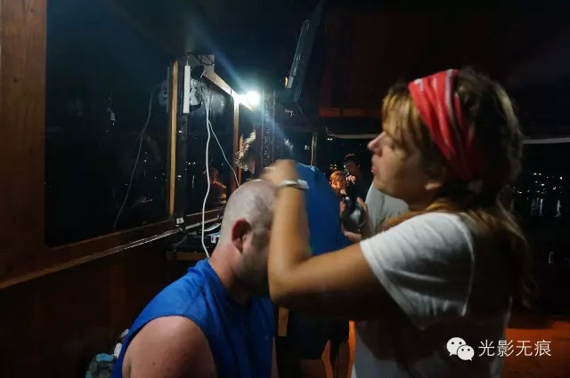 还想把船长按住也给剃了,可惜他身手灵活跑掉了,三个“和尚”够疯狂!