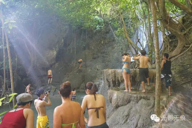 抵达岛屿中间的瀑布,各种人猿泰山式跳水,回归大自然后,焕发出的野性是大家共同的基因~~