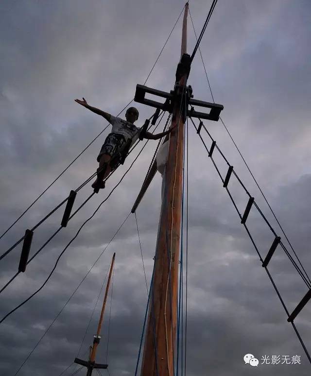 航行接近尾声了,我也得去试试桅杆上的感觉了。