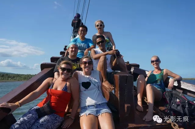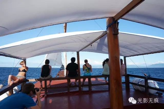 参加这次行程的,一共三十多人,除了我一个中国人和少数几个印尼人以外,主要都是欧美的旅行者。启航时遇到大浪,坐在船头和游乐园海盗船一样刺激,集体大声尖叫~学着电影里一样大喊:“I'm the king of the world~~~!!!" 还好出到外海风浪逐渐平息,不然船头应该会有各种呕吐物出现。。。