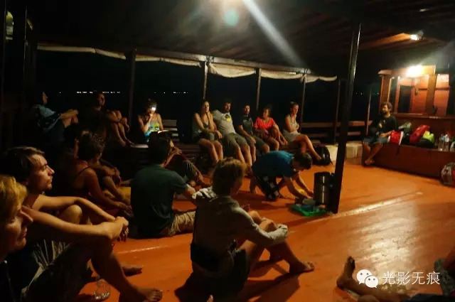 因为这次行程是探险路线,所以到了晚上只提供简易睡垫和毛毯,你可以自由选择睡在船上任何一个地方,二楼的甲板成了大家最集中的栖息地。但在航行过程中有遇到暴风雨时,大家就要跑进船舱挤着“避难”了。