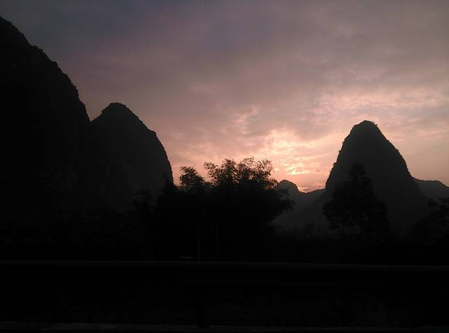 去往榕江的路上,后来我们几经周转,快天黑才到榕江,随便找了家餐馆吃的是石锅鱼,然后就休息啦。