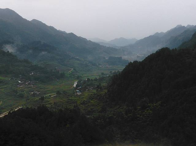 山谷中的人家,烟雨蒙蒙,有一种世外桃源的感觉吧。